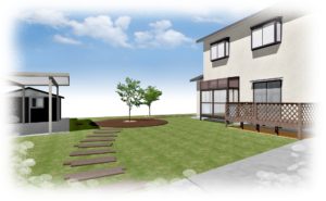 そこで、芝を張り替えて、中央にマットスタンプのサークルをデザイン
