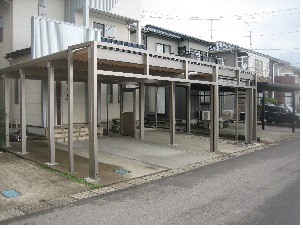 カーポートを囲い、手動シャッターなどを取り付けます(*^^)v