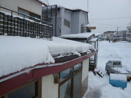 雪の降る地方では、家の屋根の雪がサンルームの屋根に落ち