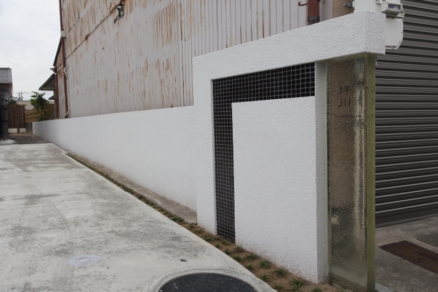 外構工事 施工事例 福井 リバーフォレスト ガレージ 表札 モニュメント デザインコンクリート