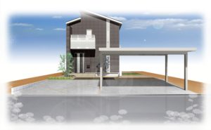 外構 カーポート デザインコンクリート 植栽 ポスト