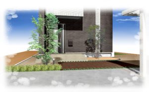 デザインコンクリートは玄関前のみにしですっきりデザインとなりました。
