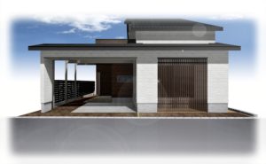 外構 デザインコンクリート カーポート 芝 エクステリア