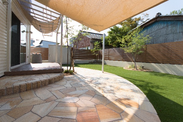 外構 リフォーム お庭 おしゃれな 石貼り 目隠しフェンス