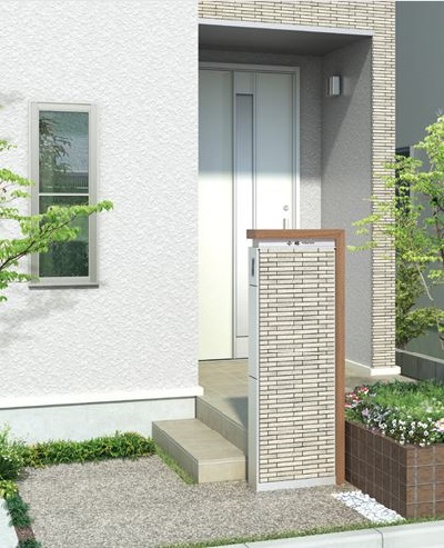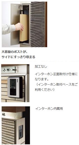 大きめの荷物も入る内蔵型ポストと、側面に埋め込む形にできるインターホン。(内臓せず、正面に取り付けることも可能です)