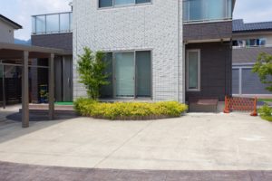 大野市 ピンコロ 折板カーポート マットスタンプ 芝 天然石飛石 ガレージ