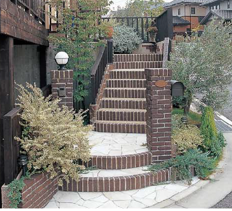このように、レンガ張りの塀や、アプローチ部分、モニュメントと、さまざまな空間イメージに溶け合い、美しく時間を語り続けます。