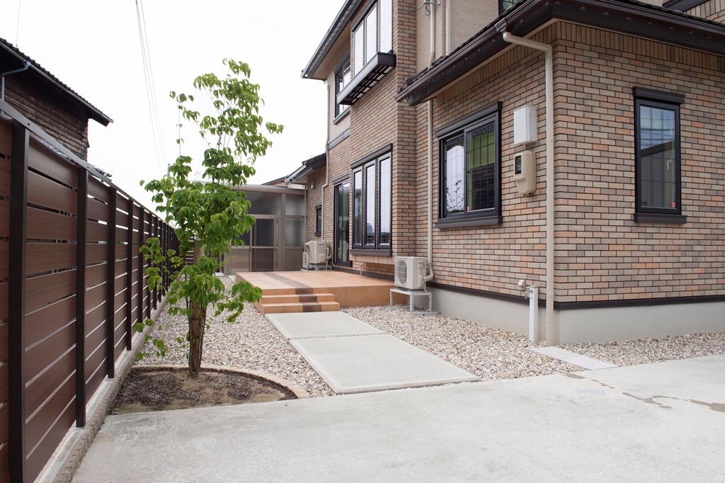 庭工事 マットスタンプ タイルテラス ビーウッドフェンス 折板サンルーム 福井県 坂井市