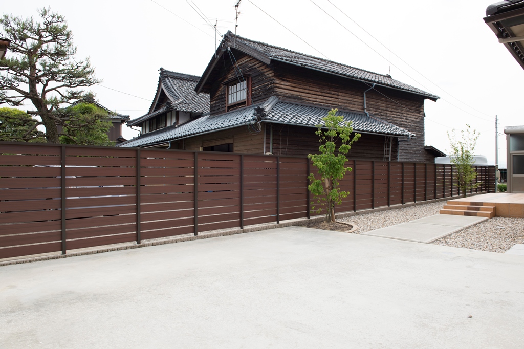 そのタイルテラスの目隠しにBウッドフェンスを立てました。