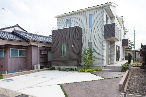 建物が白×茶の柔らかいカラーだったので、外構の資材等もベージュや木目調を多めに取り入れて