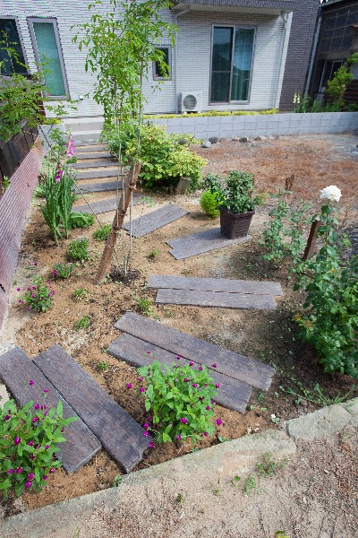 後ろの方までタイルテラスがあるのですが、平行して後ろまで花壇も続いています(*’▽’)