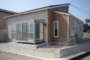 玄関の右手に雪にも強いLIXILのウィンスリーポートⅡを施工。