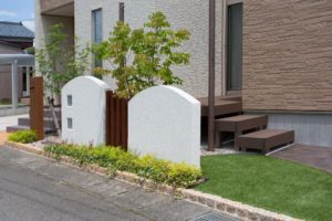 新築外構 モニュメント 樹脂デッキ シェード マットスタンプ ルシアスウォール