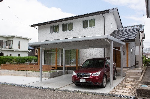 敷石 カーポート 人工芝 花壇 ピンコロ