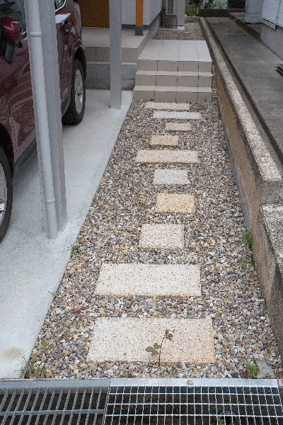 アプローチには敷石をランダムに並べました(*´▽`*)