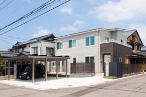 新築外構 Bウッドフェンス サンルーム モニュメント 福井市