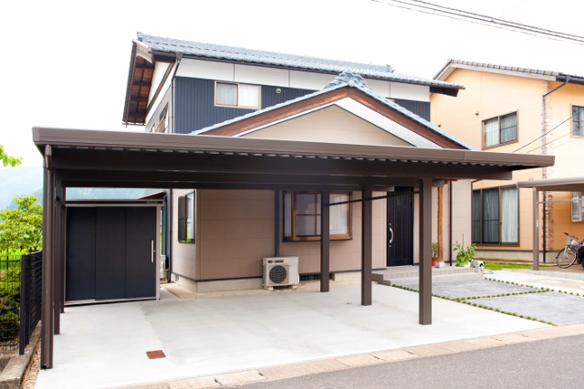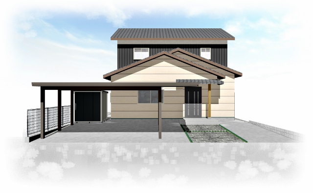 2014/10/29施工事例 福井 カーポート デザインコンクリート アプローチ 越前市 リバーフォレストのきむです。 今回も越前市のk様邸をご紹介したいと思います。 ではまずはイメージパースから そしてこちらが実際の施工写真です。 カーポートはウィンスリーポートⅡを使用。 建物に合わせた黒の物置が馴染んでますね(^^b 玄関アプローチのデザインコンクリートはフレミッシュスレートのライトグレーを施工。 タマリュウのグリーンが映えますね。