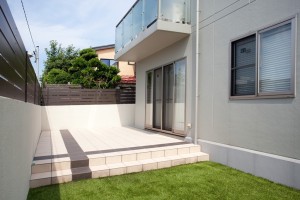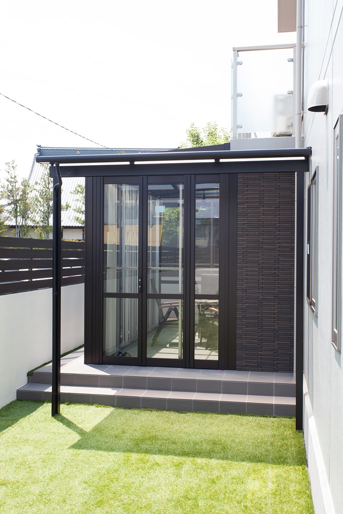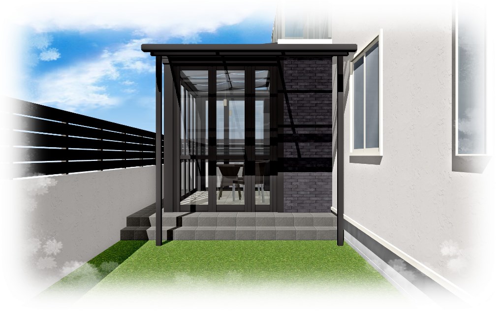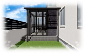 2015/08/20暖蘭物語 サンクテラスⅡ ガーデンリフォーム 福井県 福井市 こんにちはリバーフォレストのマダヨです。 8月は福井市のY様邸をご紹介しています。 こちらが施工前 そしてこちらがイメージパース そして最後に完成写真 我ながらいいパースが作れたかなぁと自画自賛… 庭側の入り口前はサンクテラスⅡを施工。 雨が降っていても濡れずに出入りできますね。
