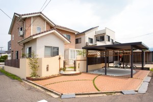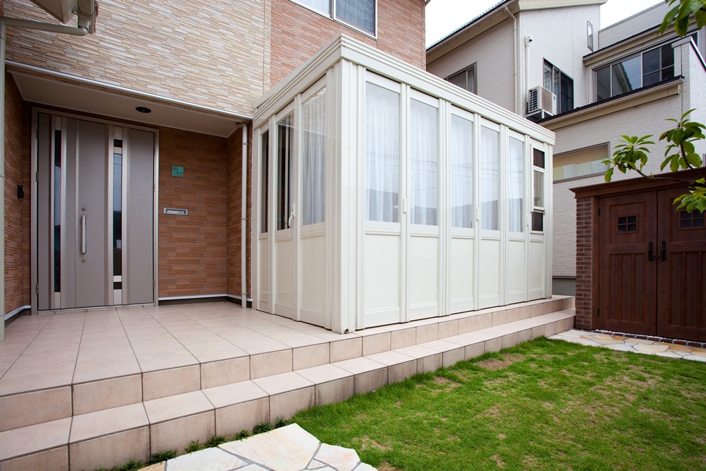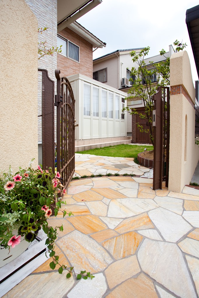 その広くなった玄関ポーチに続いてタイルテラスを増築