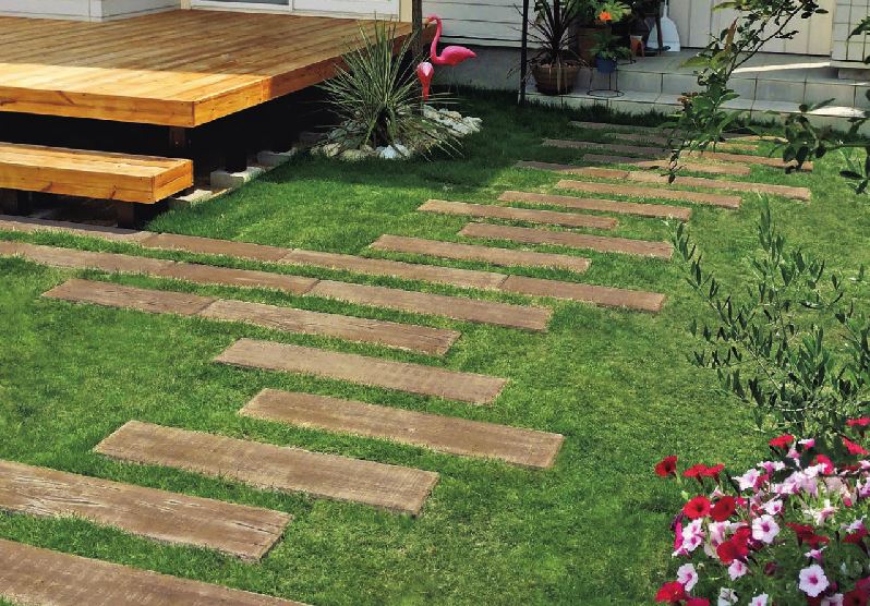 砂利や緑を挟んで飛び石風に並べたり、敷き詰めてノスタルジックな木道を作ったり、様々な演出ができますね。