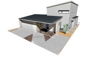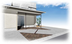 インナーガレージの前は土間コンクリートですが、玄関前は建物に合わせて