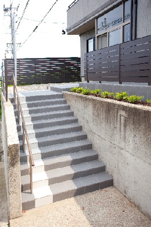 階段の300角タイル貼り 完成後です。