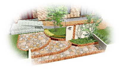 ラテンストーン 石張り レンガ 蹴上がり アプローチ
