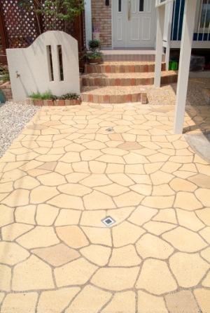 アプローチには今あるコンクリートを生かしその上からMATさんの吹き付け工法のマットスプレーを