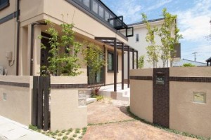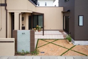 アプローチ部分のデザインコンクリートは、両方の家にあうような、色目と模様に替えました。