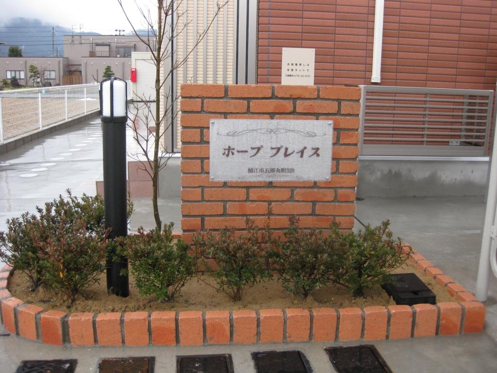 2014/01/07福井 福井市 おしゃれ 門柱 モニュメント こんにちは、リバーフォレスト 福原です。 集合住宅 モニュメント シリーズⅡ紹介します。 今回はレンガを使った門柱( モニュメント )です。 花壇とモニュメントにはユニソン さんの ソイルレンガ を積み上げました。 建物の外壁と重なり合う場所でしたので少し色のトーンを落としオレンジを使いました。花壇とモニュメントは色を同じにすることで統一感が出ました。