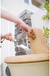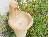 パン付きの立水栓ですので、立ったまま洗いものができ、腰をかがめる必要がありません。
