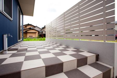 2014/09/19福井 福井市 タイルテラス こんにちは 今日の施工事例ご紹介は、福井市 K様邸 タイルテラスです。 市松模様のタイルテラス、ちょっと斬新でしょ!? あまり広くなくても、タイルテラスがあると、何にでも使えるので、とても便利ですね。 そして、お掃除も楽です。 ご用命は、リバーフォレストまで~