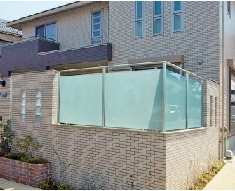 ガラスを柱で間仕切るタイプ。ガラスにアクセントがつき、スタイリッシュなスタイルを実現しました。