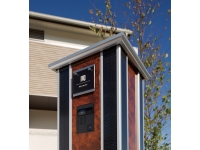 ソーラーパネルと一体化したスタイリッシュなデザイン門柱。