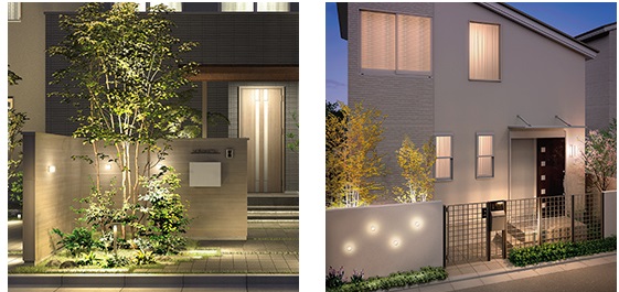 お客様を迎える大切な表札を照らすあかりとして、また、アプローチ、ガーデンのアイポイントとして、美しい光を演出します。