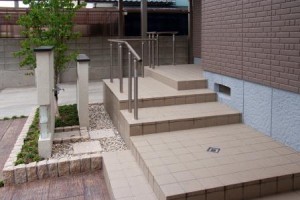 アプローチの階段につけた、LIXILの手すり、「グリップライン」です。