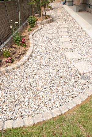 手前の縁石にも、ピンコロで統一性を持たせてあります。