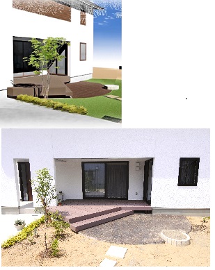 樹の木上:イメージパース 下:施工後写真