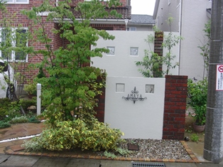 モニュメントと自転車置場だけのちょっとさみしい外構でした。