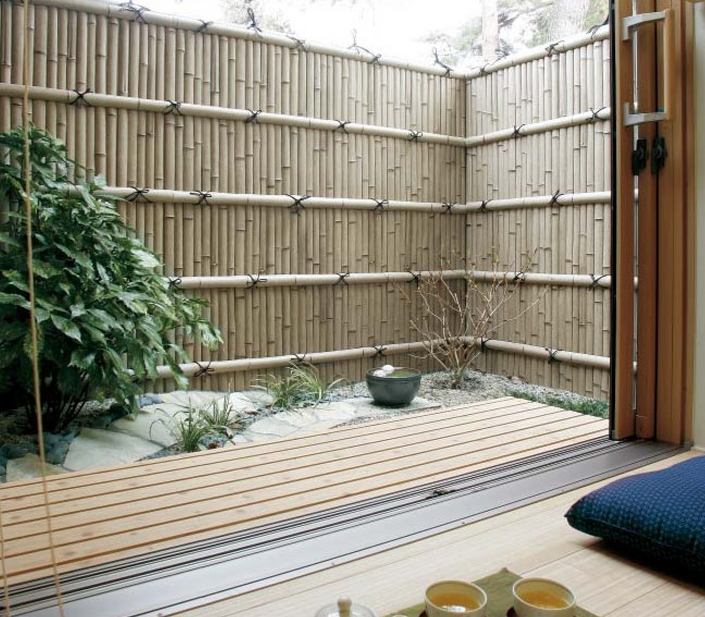↑ ↑ 味わい深い古竹で縁側空間を囲い、プライバシーを守ります。