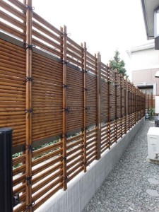 2014/04/11福井市 みす垣 和風庭園 タカショー 人工強化竹垣 目隠し こんにちは、リバーフォレストまきです。 和風のお庭にぴったりの人工強化竹垣 みす垣をご紹介したいと思います。 タカショーのみす垣は、 オーソドックスな真竹から、京銘虎竹、図面竹、色も、種類も、 幅広いバリエーションの中からお望みの表情をお選ぶことが出来ます! すす竹を使用して、 完全に目隠しをせずに透かしを入れることで、圧迫感を防ぎます。 室内や邸内を外部の視線から守り、自由なプライベート空間として 確保するために、とても有効です。