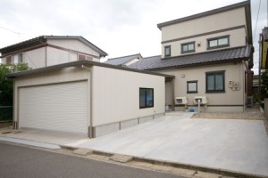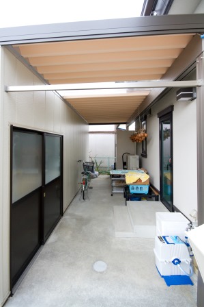 しかも、折板屋根を延長して車庫への出入り時に雨が降っていても