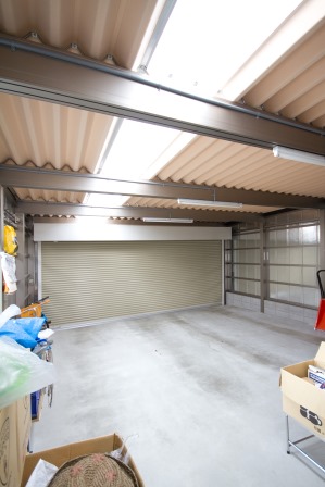 折板屋根の一部はポリカにしたので、明かりが入ってきて暗くなることもありません。