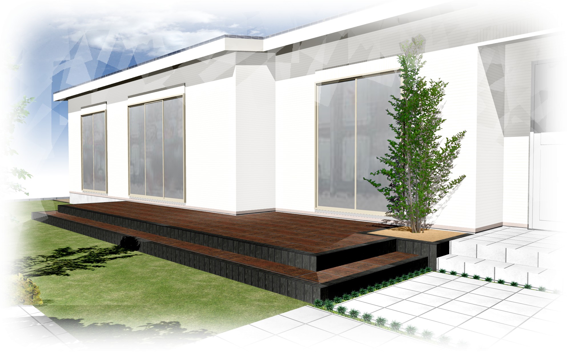 福井市 デザインコクリート ピンコロ テラス 庭 植栽 おしゃれ 福井