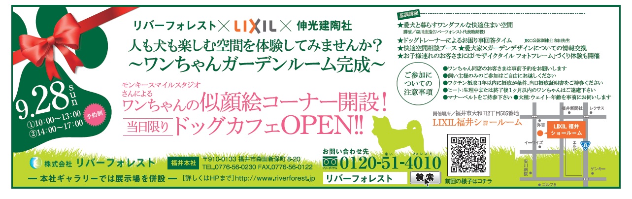9月28日(日)下記会場にて愛犬家フェア開催しますので