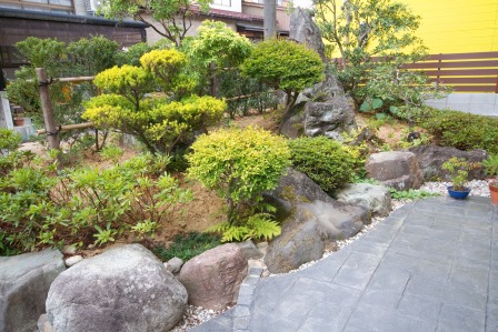 既存の植栽を活かしつつ、新しいアプローチやお庭を施工いたしました!!