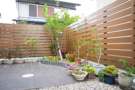 福井市 デザインコンクリート ピンコロ 植栽 木調フェンス