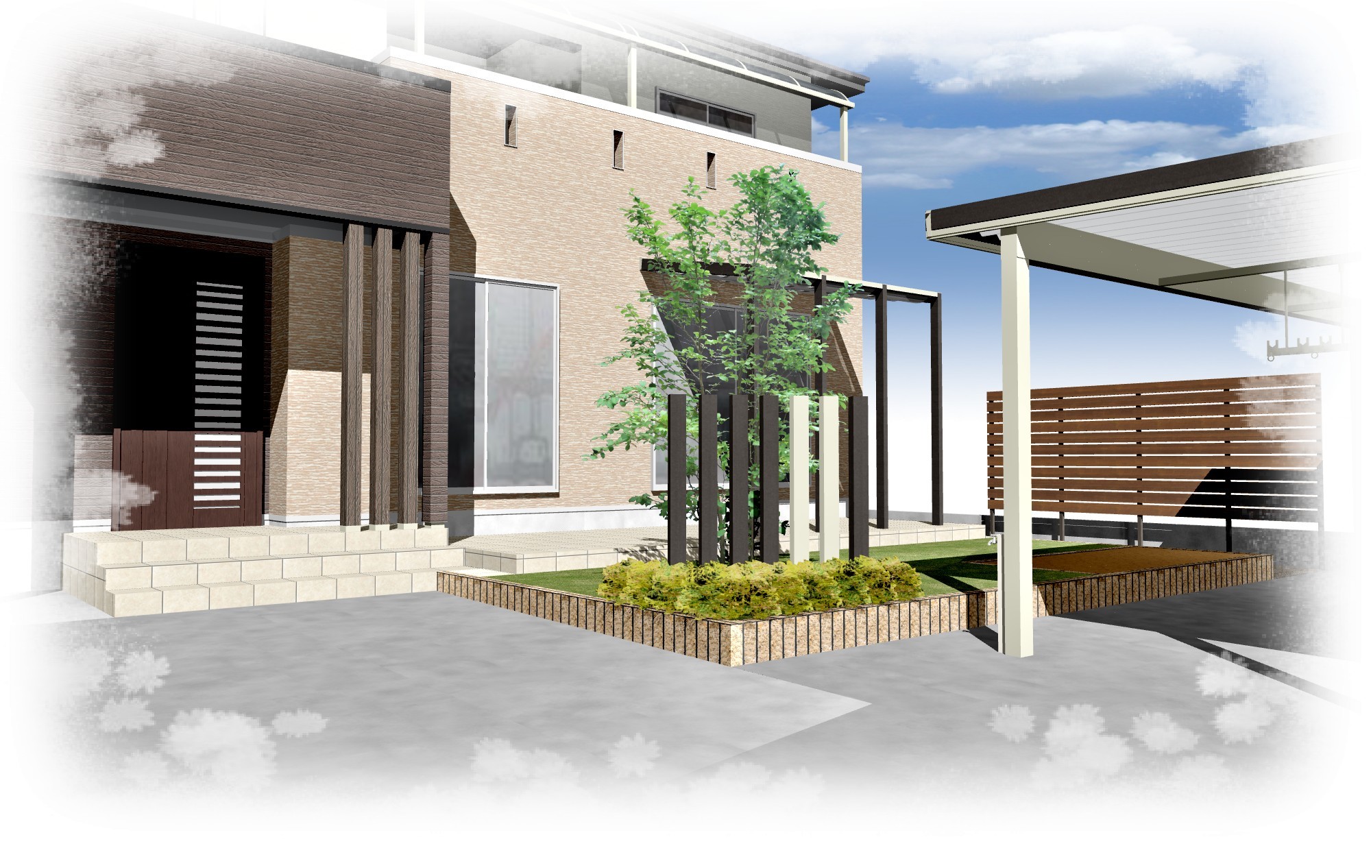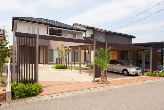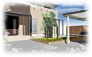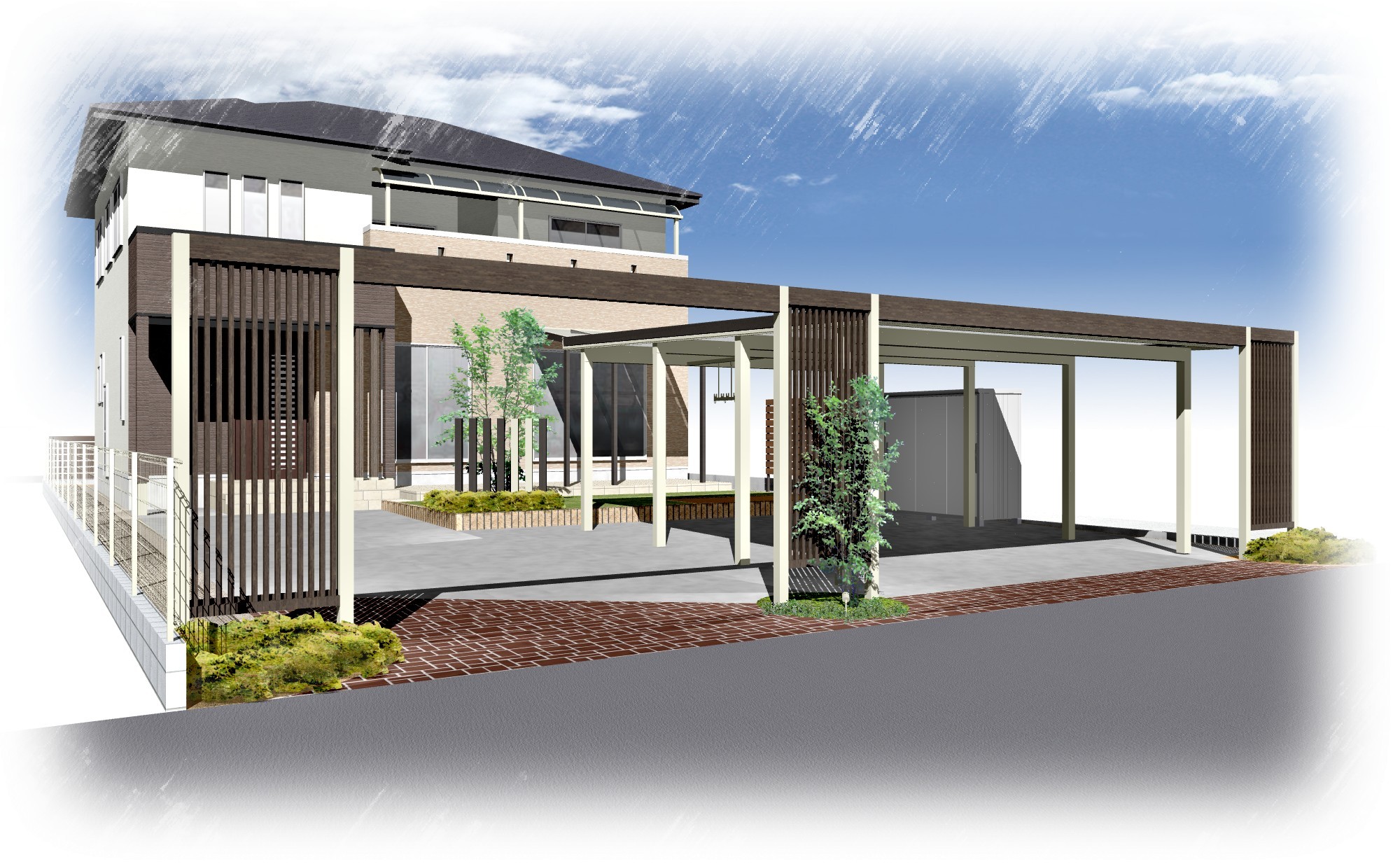 福井市 デザインコンクリート マット リクシル カーポート +G プラスG 植栽 福井