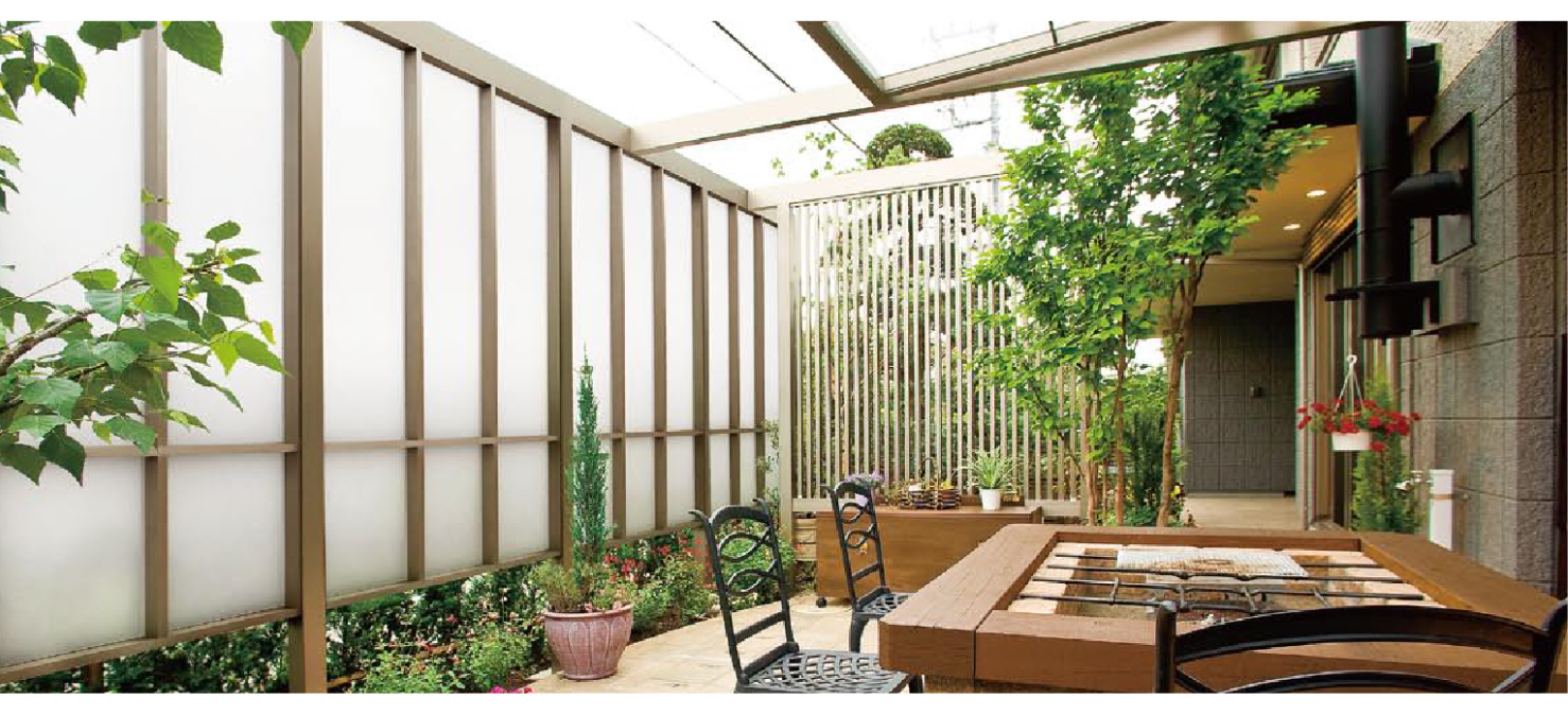 2013/07/12福井市 プラスG リクシル TOEX +G 目隠し 福井県 こんにちは、リバーフォレスト まきです。 前回に引き続きリクシルのプラスG(+G)を紹介します。 本日は、おしゃれに目隠しが出来るGスクリーンです。 Gスクリーンはプランに合わせて仕様が選べます。 ↓ は上部にフレーム無い仕様です。 ↓ 上部にフレームの通る仕様です。 左右のフレームと連続した流れのあるデザインができます。 プラスGのスクリーンには、 縦格子・角格子・横格子・・・・・沢山のスクリーンがありますので、 次回ご紹介します。