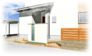 塗り壁と塗り壁の間に Uroco ( ウロコ )を配置。